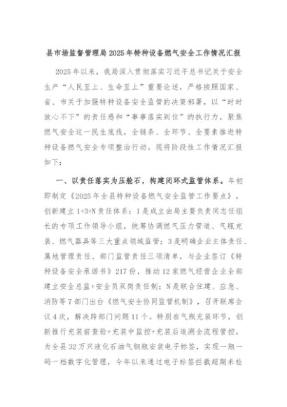 【七哥公文】2025年:县市场监督管理局2025年特种设备燃气安全工作情况汇报+更多免费公文+VX:QiGeGongWen2024