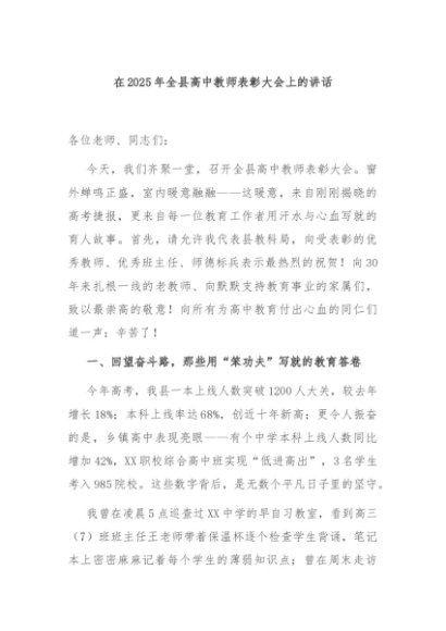 / 【七哥公文】2025年:在2025年全县高中教师表彰大会上的讲话+更多免费公文+VX:QiGeGongWen2024