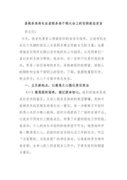 / 【七哥公文】2025年:县税务局局长在县税务局干部大会上的任职表态发言+更多免费公文+VX:QiGeGongWen2024