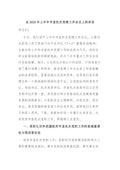 / 【七哥公文】2025年:在2025年上半年市直机关党建工作会议上的讲话+更多免费公文+VX:QiGeGongWen2024
