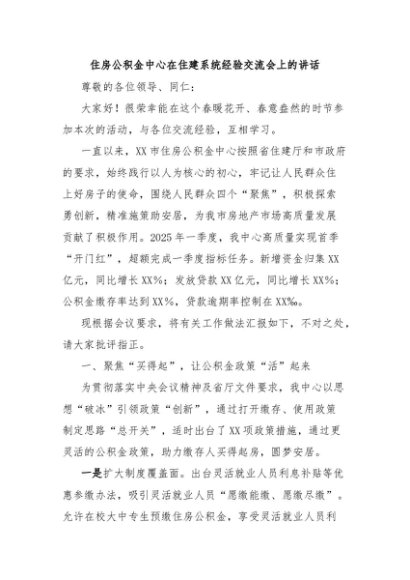 / 【七哥公文】2025年:住房公积金中心在住建系统经验交流会上的讲话+更多免费公文+VX:QiGeGongWen2024