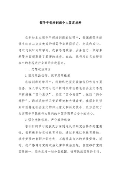/ 【七哥公文】2025年:领导干部培训班个人鉴定材料+更多免费公文+VX:QiGeGongWen2024