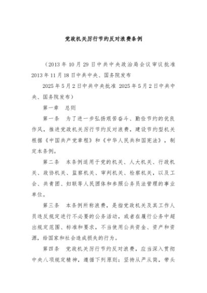 【七哥公文】2025年:党政机关厉行节约反对浪费条例+更多免费公文+VX:QiGeGongWen2024