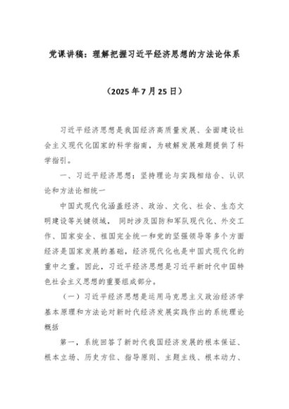 / 【七哥公文】2025年:党课讲稿:理解把握习近平经济思想的方法论体系+更多免费公文+VX:QiGeGongWen2024