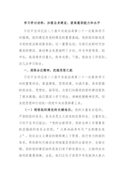 / 【七哥公文】2025年:学习研讨材料:加强自身建设,提高履职能力和水平+更多免费公文+VX:QiGeGongWen2024