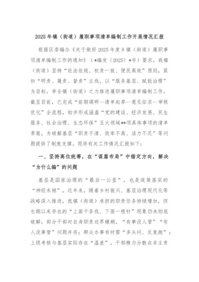 【七哥公文】2025年:2025年镇(街道)履职事项清单编制工作开展情况汇报+更多免费公文+VX:QiGeGongWen2024
