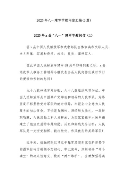 / 【七哥公文】2025年:(6篇)2025年八一建军节慰问信汇编+更多免费公文+VX:QiGeGongWen2024