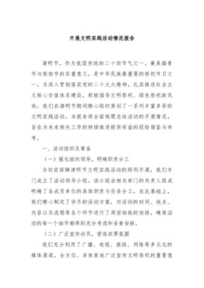 / 【七哥公文】2025年:开展文明实践活动情况报告+更多免费公文+VX:QiGeGongWen2024