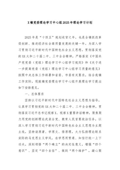 【七哥公文】2025年:X镇党委理论学习中心组2025年理论学习计划+更多免费公文+VX:QiGeGongWen2024