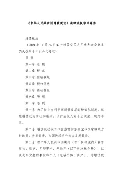 / 【七哥公文】2025年:《中华人民共和国增值税法》法律法规学习课件+更多免费公文+VX:QiGeGongWen2024