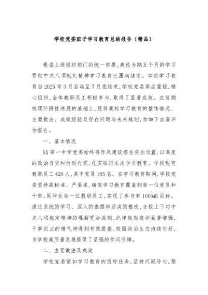 / 【七哥公文】2025年:学校党委班子学习教育总结报告(精品)+更多免费公文+VX:QiGeGongWen2024