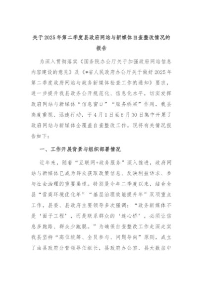 【七哥公文】2025年:关于2025年第二季度县政府网站与新媒体自查整改情况的报告+更多免费公文+VX:QiGeGongWen2024