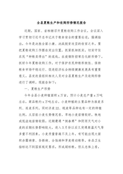 / 【七哥公文】2025年:全县夏粮生产和收购形势情况报告+更多免费公文+VX:QiGeGongWen2024
