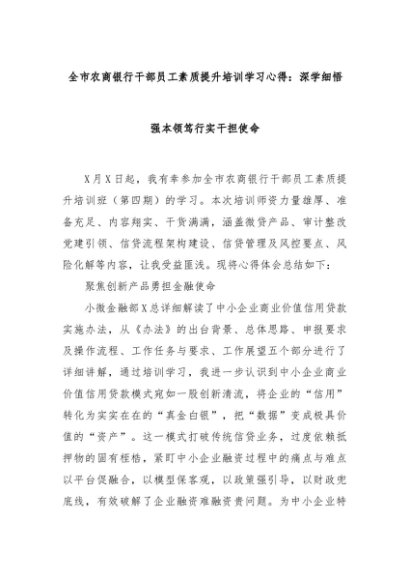 【七哥公文】2025年:全市农商银行干部员工素质提升培训学习心得:深学细悟强本领笃行实干担使命+更多免费公文+VX:QiGeGongWen2024