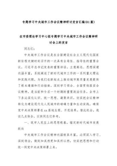 【七哥公文】2025年:(61篇)专题学习中央城市工作会议精神研讨发言汇编+更多免费公文+VX:QiGeGongWen2024