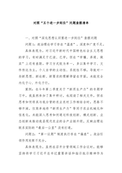 【七哥公文】2025年:对照“五个进一步到位”问题查摆清单+更多免费公文+VX:QiGeGongWen2024