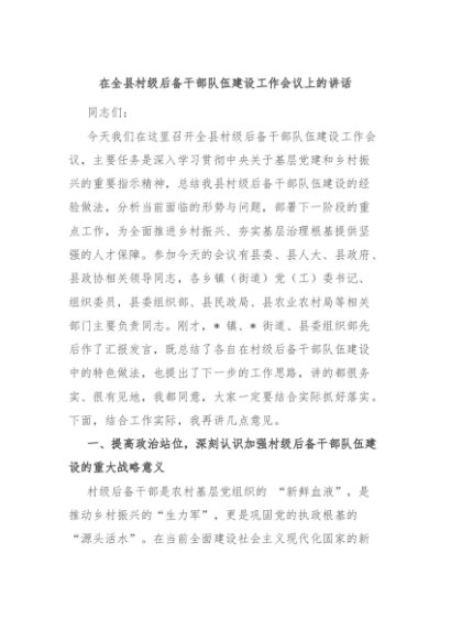 / 【七哥公文】2025年:在全县村级后备干部队伍建设工作会议上的讲话+更多免费公文+VX:QiGeGongWen2024
