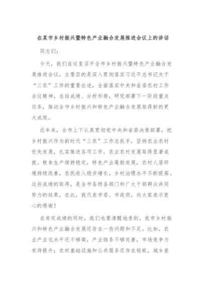 / 【七哥公文】2025年:在某市乡村振兴暨特色产业融合发展推进会议上的讲话+更多免费公文+VX:QiGeGongWen2024