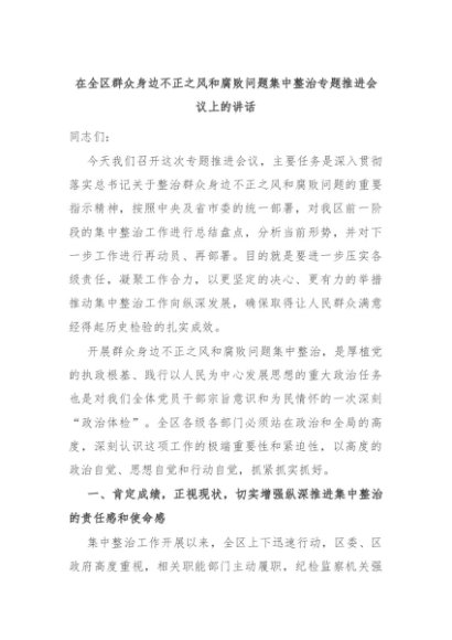 【七哥公文】2025年:在全区群众身边不正之风和腐败问题集中整治专题推进会议上的讲话+更多免费公文+VX:QiGeGongWen2024