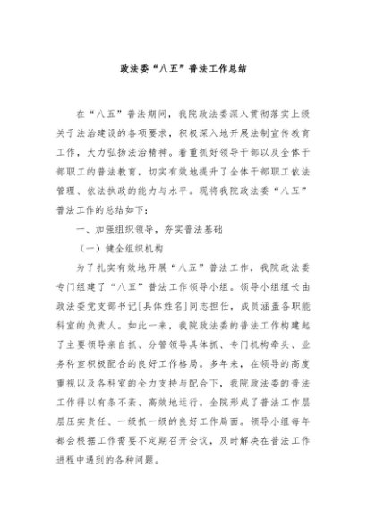 【七哥公文】2025年:政法委“八五”普法工作总结+更多免费公文+VX:QiGeGongWen2024