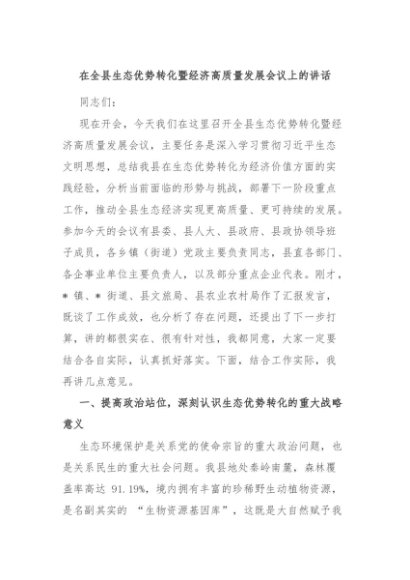 / 【七哥公文】2025年:在全县生态优势转化暨经济高质量发展会议上的讲话+更多免费公文+VX:QiGeGongWen2024