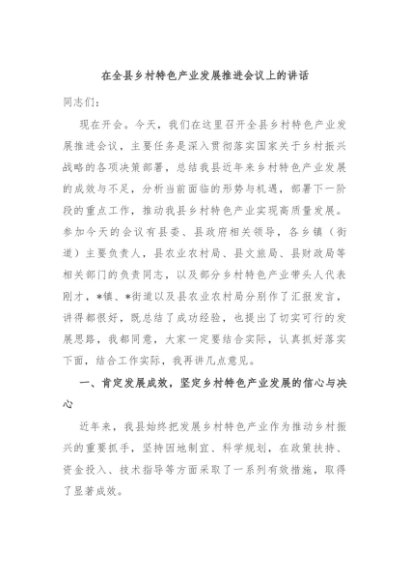 / 【七哥公文】2025年:在全县乡村特色产业发展推进会议上的讲话+更多免费公文+VX:QiGeGongWen2024