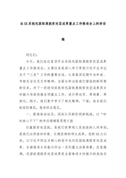 【七哥公文】2025年:在XX系统巩固拓展脱贫攻坚成果重点工作推进会上的讲话稿+更多免费公文+VX:QiGeGongWen2024