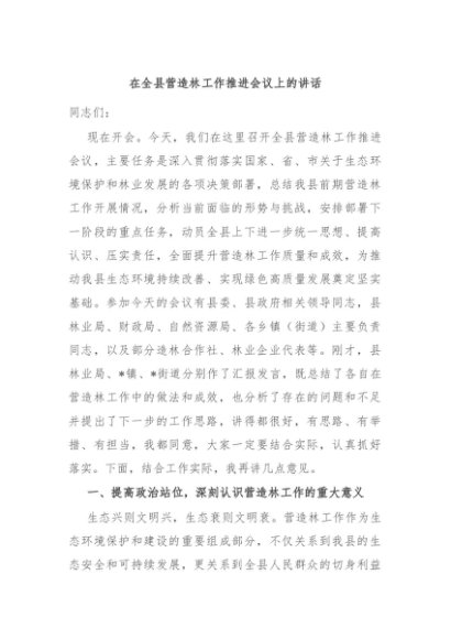 / 【七哥公文】2025年:在全县营造林工作推进会议上的讲话+更多免费公文+VX:QiGeGongWen2024