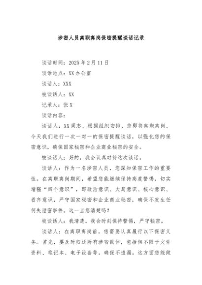 / 【七哥公文】2025年:涉密人员离职离岗保密提醒谈话记录+更多免费公文+VX:QiGeGongWen2024