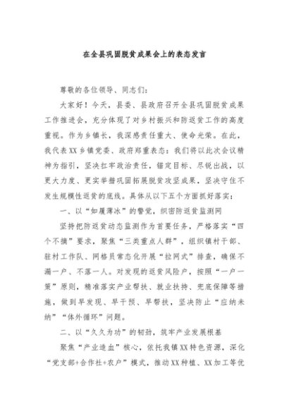 / 【七哥公文】2025年:在全县巩固脱贫成果会上的表态发言+更多免费公文+VX:QiGeGongWen2024