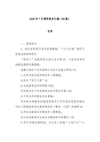 / 【七哥公文】2025年:(68篇)2025年7月调研报告汇编+更多免费公文+VX:QiGeGongWen2024