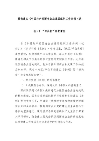 【七哥公文】2025年:贯彻落实《中国共产党国有企业基层组织工作条例(试行)》“回头看”检查情况+更多免费公文+VX:QiGeGongWen2024