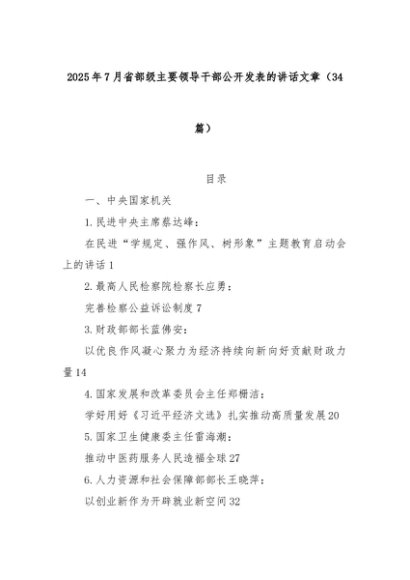 【七哥公文】2025年:(34篇)2025年7月省部级主要领导干部公开发表的讲话文章+更多免费公文+VX:QiGeGongWen2024