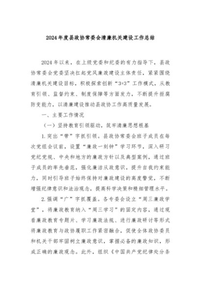 / 【七哥公文】2025年:2024年度县政协常委会清廉机关建设工作总结+更多免费公文+VX:QiGeGongWen2024
