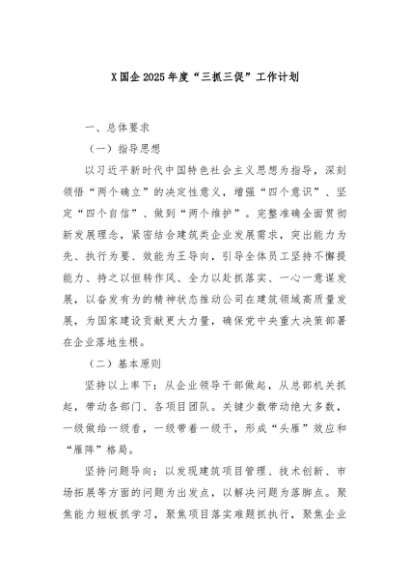 / 【七哥公文】2025年:X国企2025年度“三抓三促”工作计划+更多免费公文+VX:QiGeGongWen2024