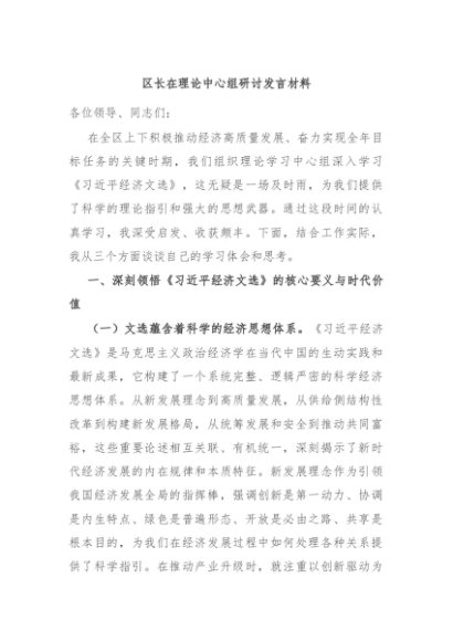 / 【七哥公文】2025年:区长在理论中心组研讨发言材料+更多免费公文+VX:QiGeGongWen2024