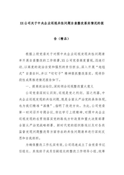 【七哥公文】2025年:XX公司关于中央企业巡视共性问题自查整改落实情况的报告(精品)+更多免费公文+VX:QiGeGongWen2024