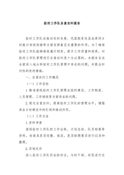 / 【七哥公文】2025年:驻村工作队自查自纠报告+更多免费公文+VX:QiGeGongWen2024