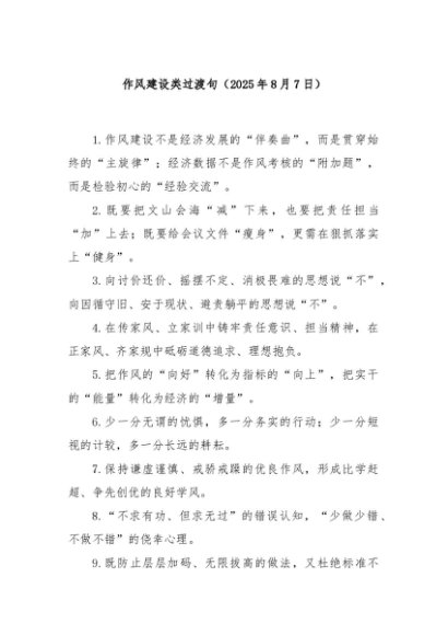 / 【七哥公文】2025年:作风建设类过渡句(2025年8月7日)+更多免费公文+VX:QiGeGongWen2024
