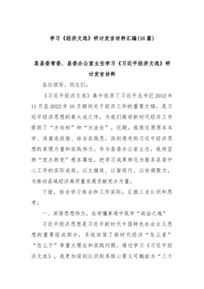 / 【七哥公文】2025年:(16篇)学习《经济文选》研讨发言材料汇编+更多免费公文+VX:QiGeGongWen2024