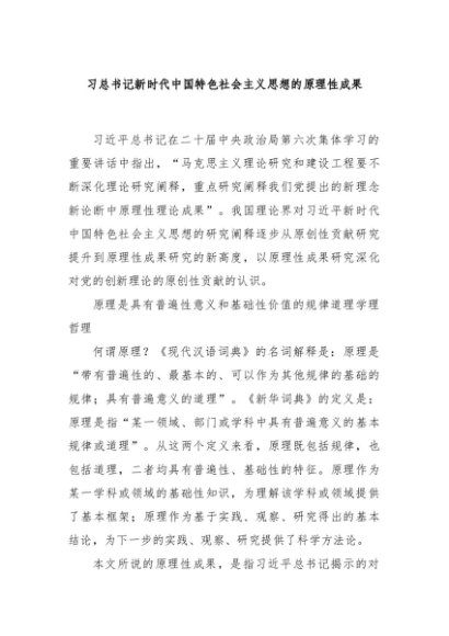 【七哥公文】2025年:习总书记新时代中国特色社会主义思想的原理性成果+更多免费公文+VX:QiGeGongWen2024