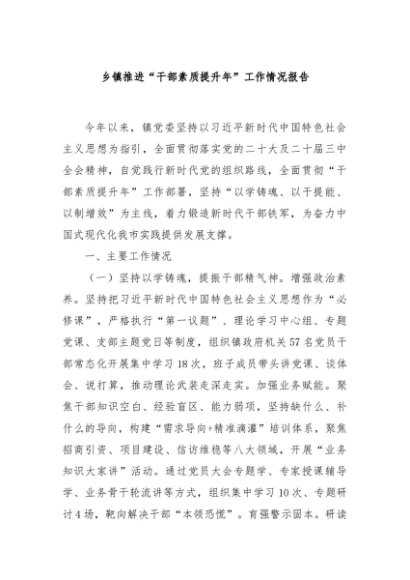 / 【七哥公文】2025年:乡镇推进“干部素质提升年”工作情况报告+更多免费公文+VX:QiGeGongWen2024