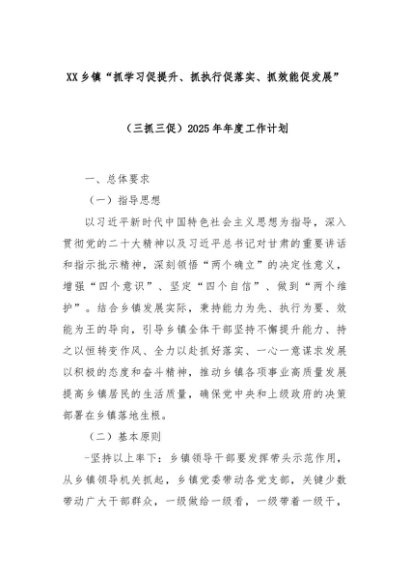 【七哥公文】2025年:XX乡镇“抓学习促提升、抓执行促落实、抓效能促发展”(三抓三促)2025年年度工作计划+更多免费公文+VX:QiGeGongWen2024