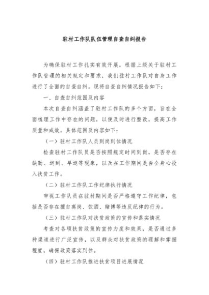 / 【七哥公文】2025年:驻村工作队队伍管理自查自纠报告+更多免费公文+VX:QiGeGongWen2024