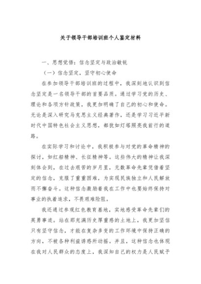 / 【七哥公文】2025年:关于领导干部培训班个人鉴定材料+更多免费公文+VX:QiGeGongWen2024