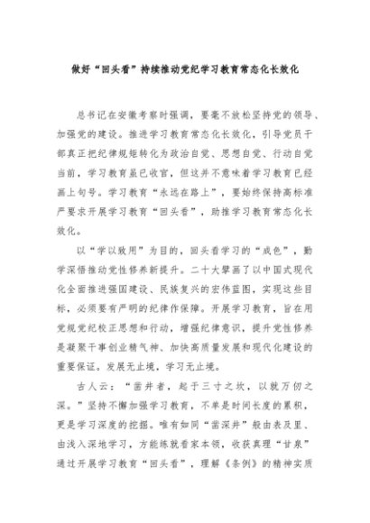 / 【七哥公文】2025年:做好“回头看”持续推动党纪学习教育常态化长效化+更多免费公文+VX:QiGeGongWen2024