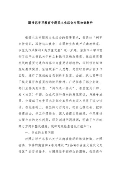 / 【七哥公文】2025年:副书记学习教育专题民主生活会对照检查材料+更多免费公文+VX:QiGeGongWen2024