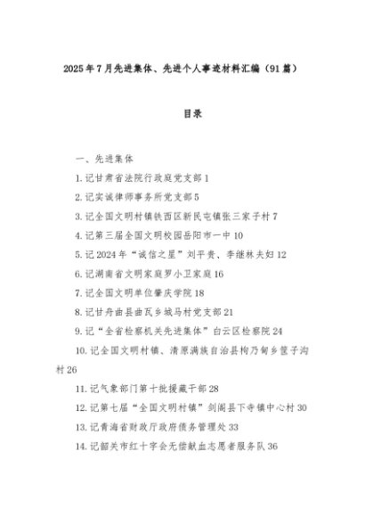 【七哥公文】2025年:(91篇)2025年7月先进集体、先进个人事迹材料汇编+更多免费公文+VX:QiGeGongWen2024