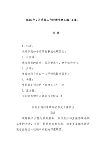 / 【七哥公文】2025年:(5篇)2025年7月单位工作经验文章汇编+更多免费公文+VX:QiGeGongWen2024