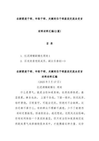 【七哥公文】2025年:(2篇)在新提拔干部、年轻干部、关键岗位干部座谈交流会发言材料材料汇编+更多免费公文+VX:QiGeGongWen2024